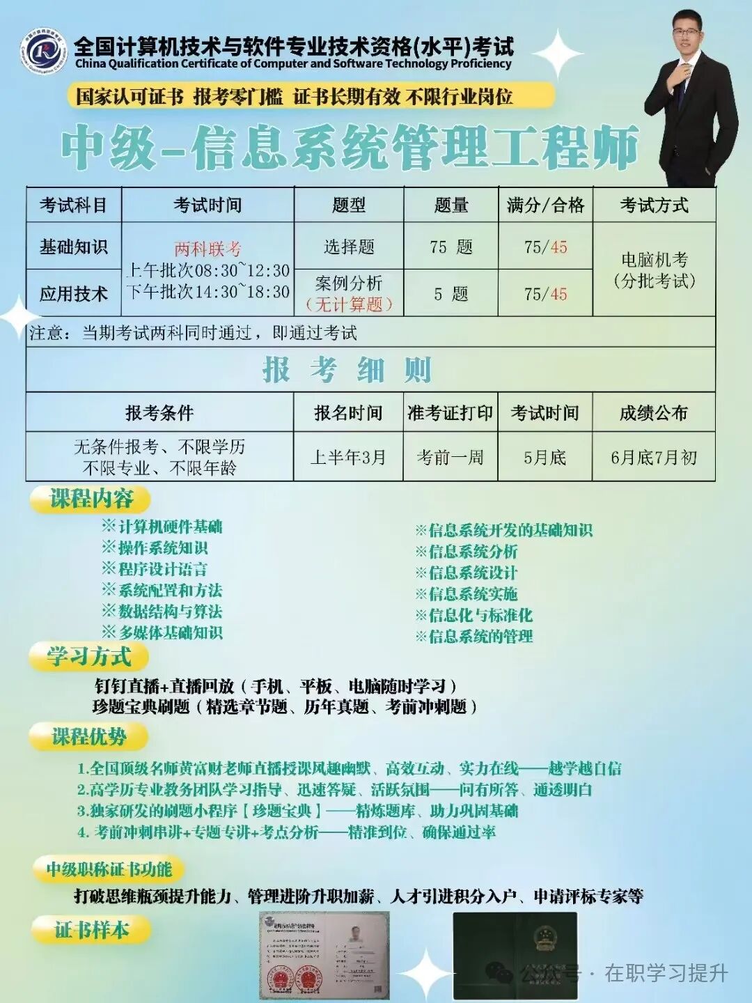 计算机软考中级职称-信息系统管理工程师介绍如下:(2025年5月份考期)报名加微信: