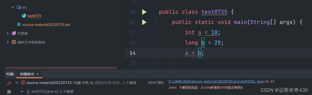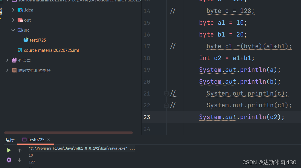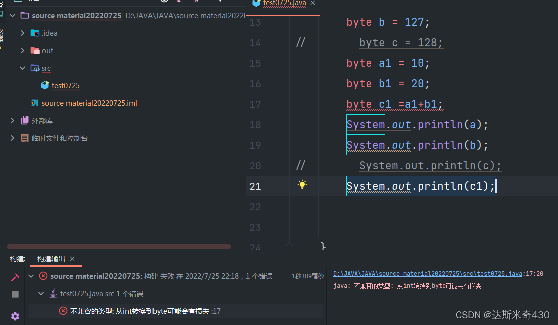 第二个解决方案:是把byte c = a1 + b1, 改成int c1 =a1+b1;然后运行就会发现问题解决了