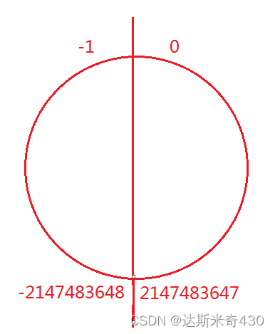 他的数值范围是-2^31~(2^31)-1,-~。原因就不复述, 一样的。