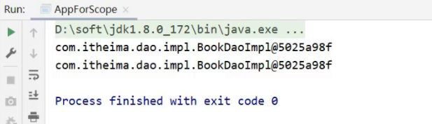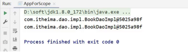 - 结论:默认情况下,Spring创建的bean对象都是单例的