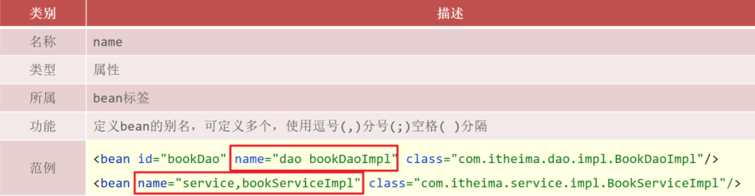 - 前面提过为bean设置id时,id必须唯一,但是如果由于命名习惯而产生了分歧后,该如何解决?