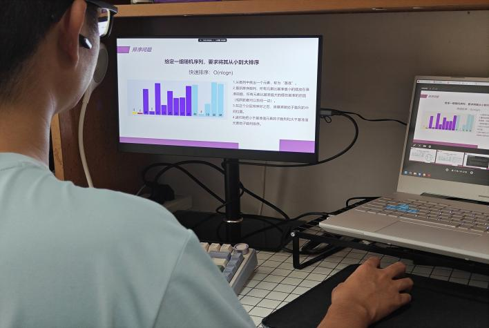 为了让更多同学认识到算法的重要性,2024年9月24日星期二下午14点30分,通过钉钉在线课堂的方式,由我院双创中心ACM组的钟启涛同学主持开展了主题为“算法三问”的双创大讲堂,吸引了全院200多人在线同时学习。