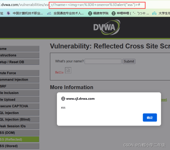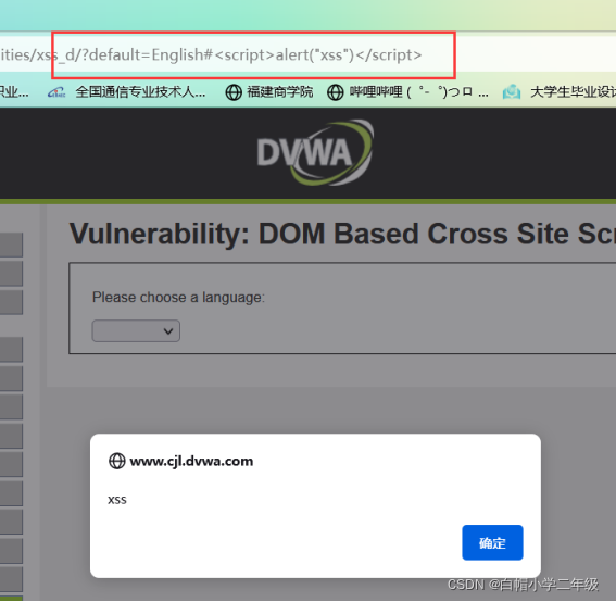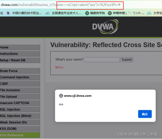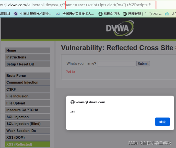 构造payload:<script>alert("xss")</script>,注意这次URL上的defalut要为空,