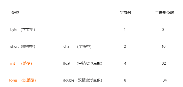 - 数据范围与字节数不一定相关,例如float数据范围比 long 更加广泛,但是float是4字节,1ong是8字节。