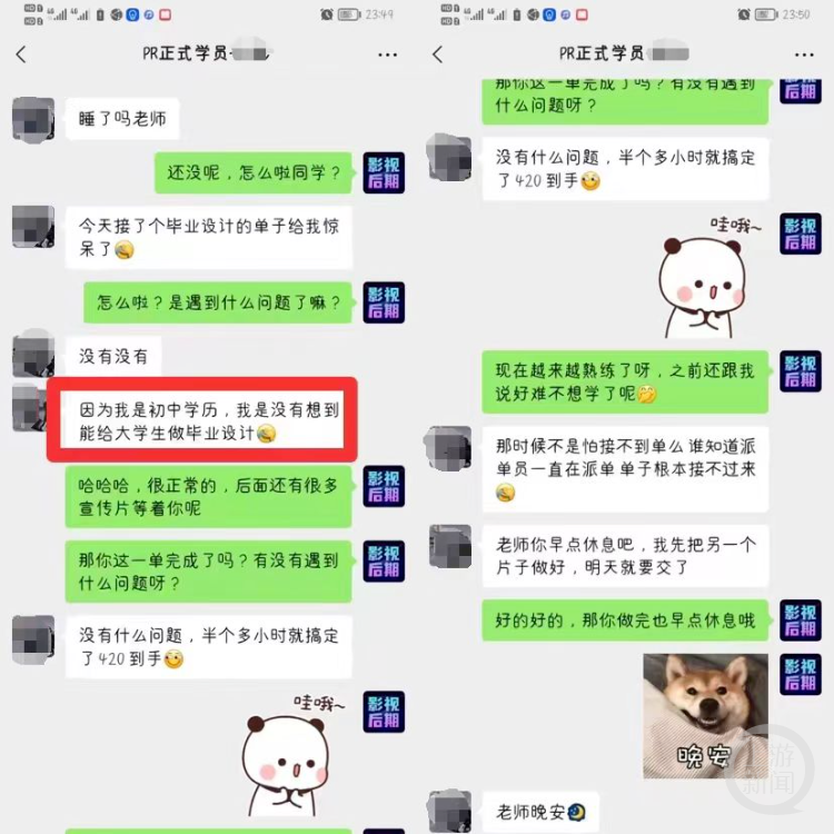 “完成9节剪辑课程后可以到外包接单群赚钱”