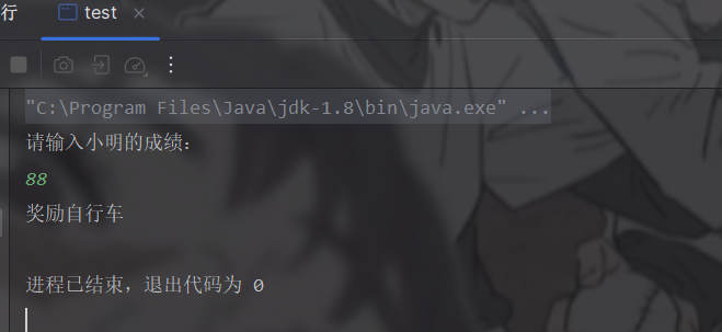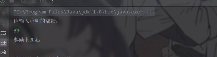 题目:请输入小明的成绩,如果他在80以上奖励自行车,如果他在80分以下奖励七匹狼;