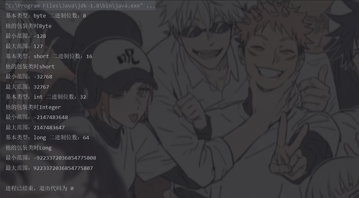 2.整数类型:byte(1字节) short (2字节) int(4字节) long(8字节)