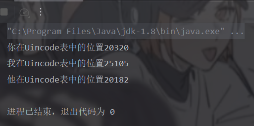 编写一段程序找出‘你’’我‘’他‘在Unicode中的位置