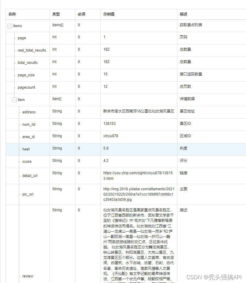 xiecheng.item_get_scenic-获取景点详情数据接口返回值说明