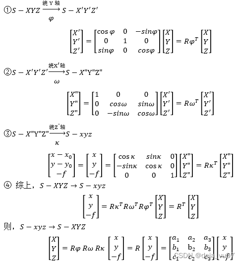 已知xi',yi',Xi,Yi,Zi,x0,y0,f , 求Xs,Ys,Zs,ai,bi,ci