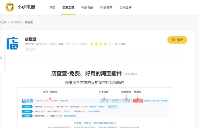 店查查插件是一款专业免费的淘宝网店数据分析插件。店查查插件可以帮助用户查询各种网店数据,包括商品价格、上架时间和淘宝排名等等,能够让用户清楚完整地了解网店的运营状况,分析直观,包括聚划算活动各个阶段数据一目了然。店查查插件支持实时监控店铺销量,每10秒进行一次数据更新,是卖家实用必备的数据工具。