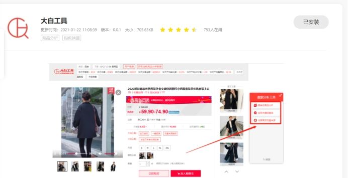 大白工具插件,可以安装在浏览器上使用,在打开淘宝相关网站或者生意参谋即可使用,全网首发一键透视任意竞店流量来源,还有买家秀采集、问大家采集、主图&视频下载、店铺微淘和直播分析、上新监控等详情页功能,以及可以查询任意单品主图点击率、首图CTR评分、主图牛皮癣等的数据分析功能,是卖家运营必备的黑科技软件。