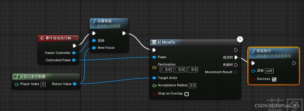 33.打开 寻找玩家,如下添加 设置焦距 节点