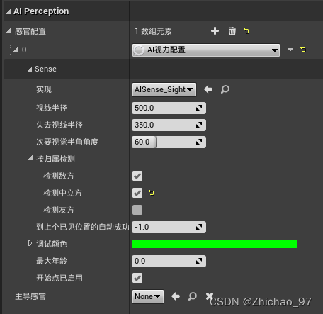 AI看到玩家右上角打印True,失去视野打印False