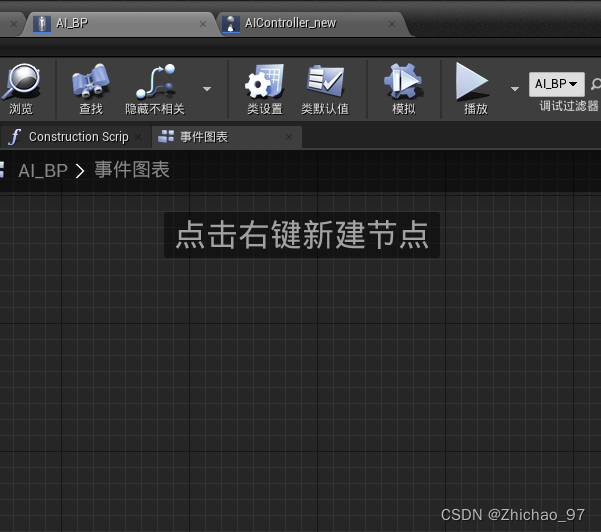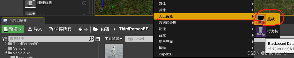 1.鼠标右键点击内容浏览器,选择人工智能-》黑板