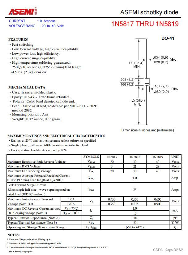 ASEMI肖特基二极管1N5819参数: