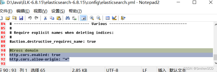 - 在elasticsearch的config目录下,修改elasticsearch.yml文件,添加跨域内容