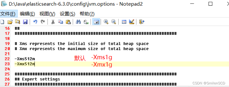 - Elasticsearch基于Lucene的,而Lucene底层是java实现,学习过程中,建议将jvm参数修改小一些。