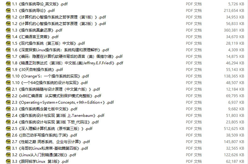 推荐理由:讲得很细,内存管理、进程调度、并发同步、中断管理4个部分用了600多页。