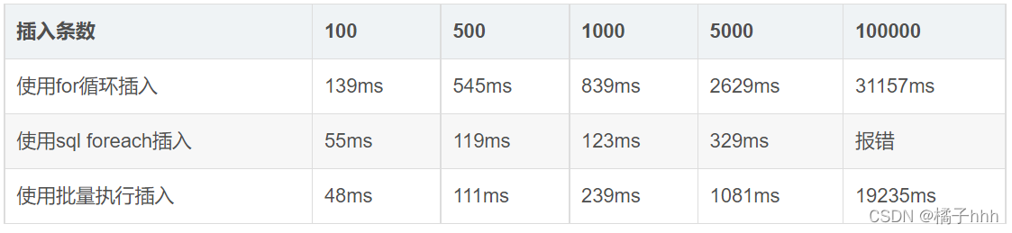 效率高,但条数过长会报错,插入条数长时可用,需要预估条数,在进行跑批。