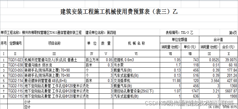 单个项目的合计价格(X):单个项目的合计消耗台班量(IX)X单个项目的单价定额(VII)