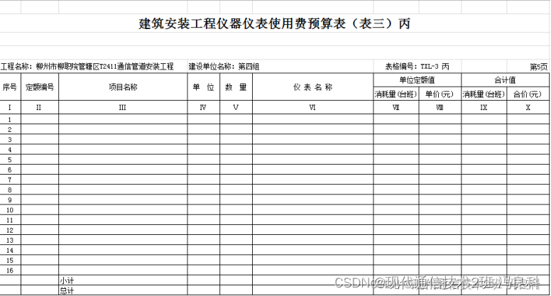 表3:建筑安装工程仪器仪表使用费预算表也是依据415定额的标准填写,但要和表1的填写定额编号要一致
