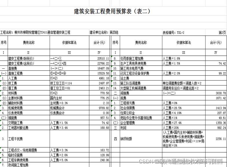 表1:建筑安装工程量预算表是依据415定额的标准填写,不得出现错误。