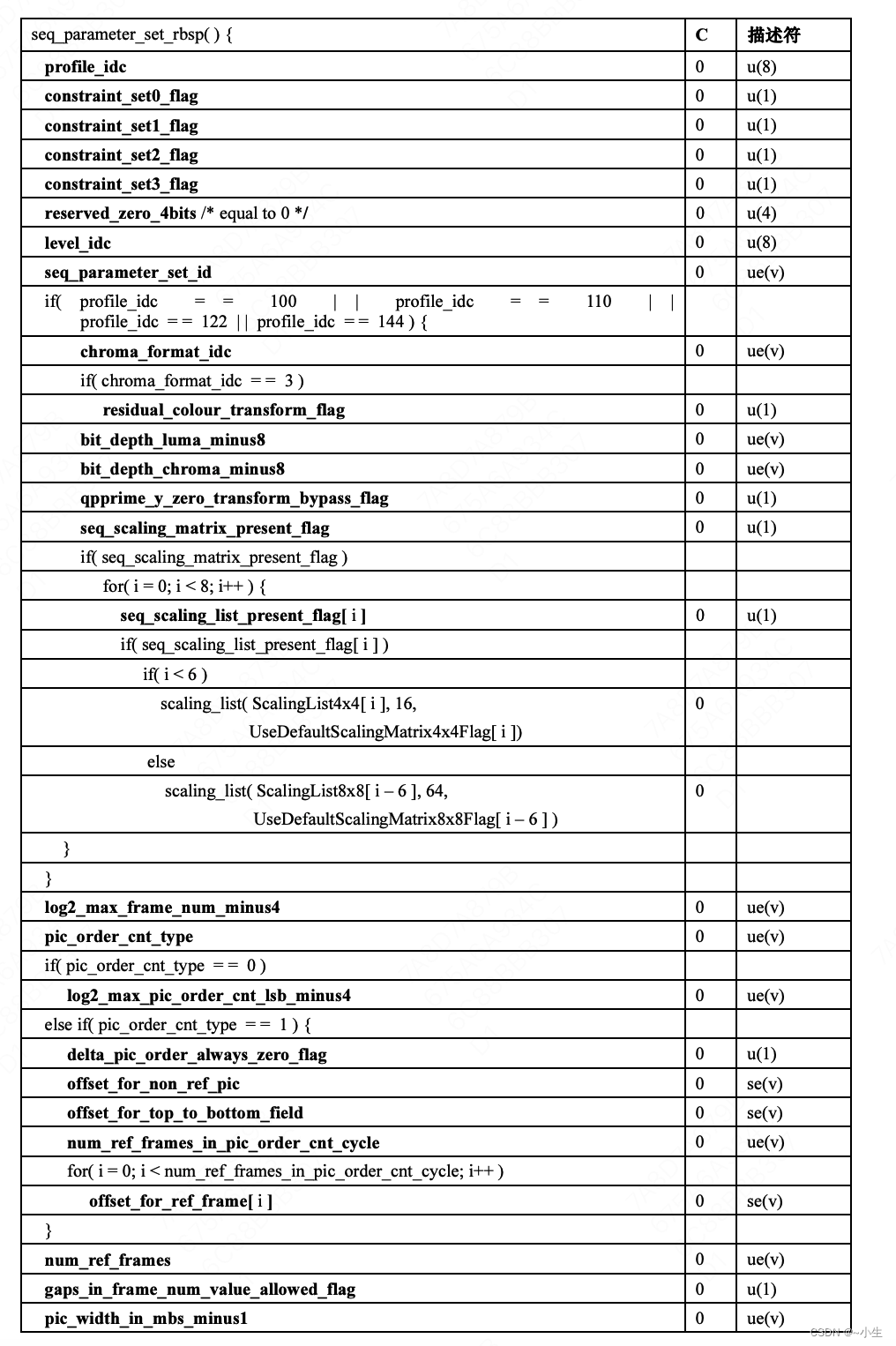 1、在标准文档中,都是用三列表格描述SPS/PPS: