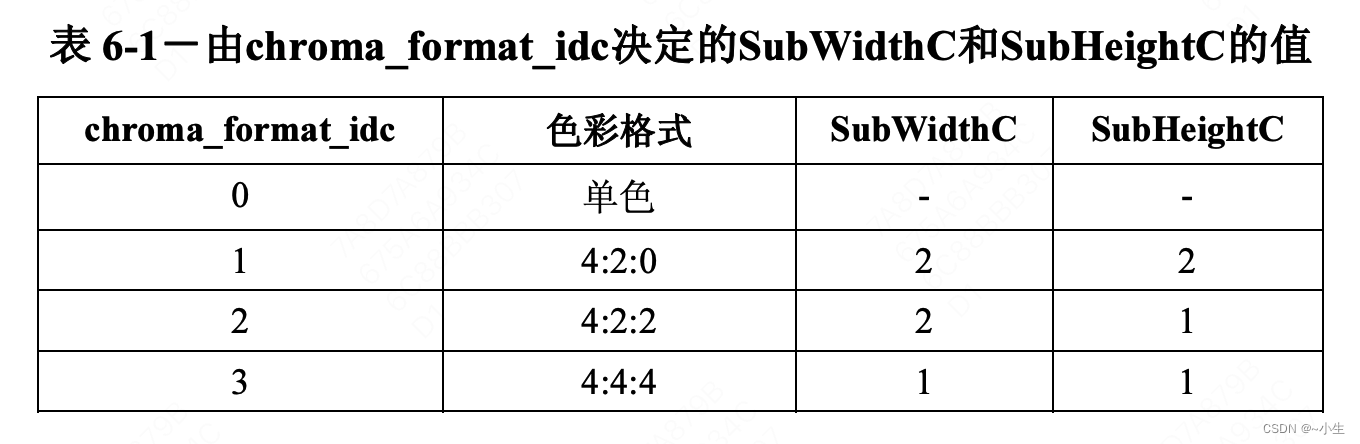 (6)chroma_format_idc:与亮度取样对应的色度取样chroma_format_idc不存在时,默认值是1,表示yuv420。