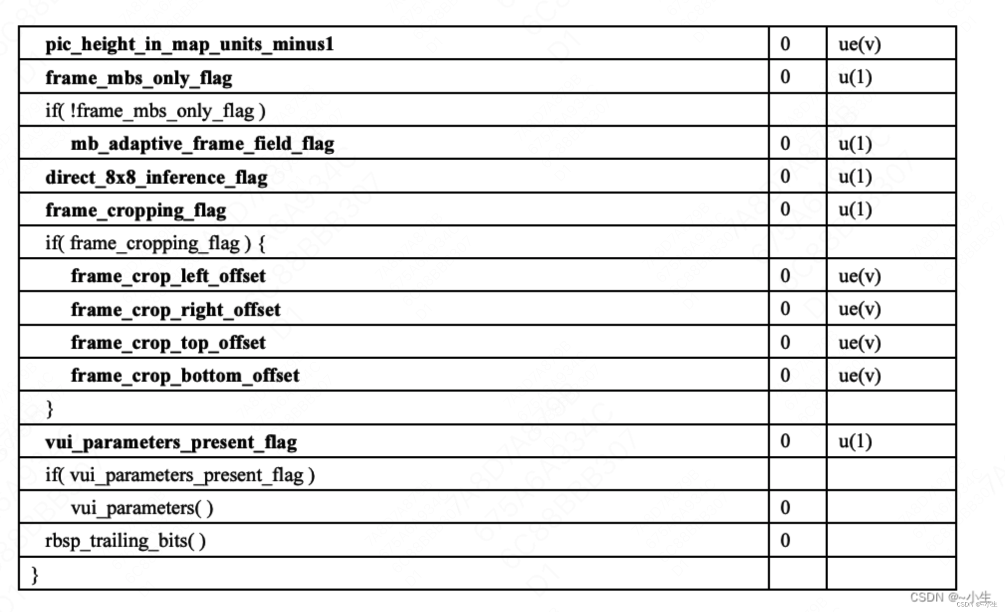 2、码流中读到的SPS、PPS中的某些字段数据是经过一次编码之后的数据,并不是原始数据。这个过程被称之为熵编码,熵编码是一类编码的总称,在SPS和PPS中主要使用的是一种叫做指数哥伦布编码的熵编码算法。