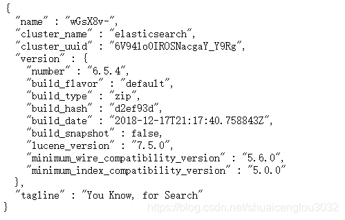 下载好之后解压,双击elasticsearch.bat,浏览器访问127.0.0.1:9200看到如下代码就说明elasticsearch成功运行: