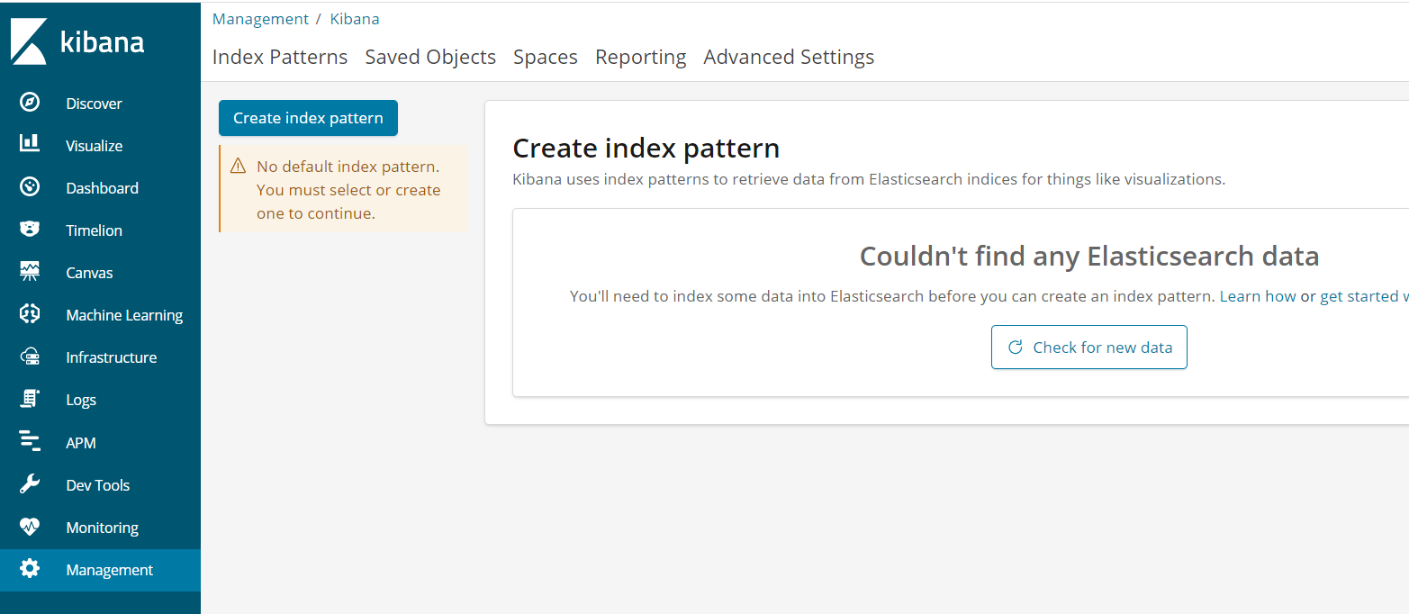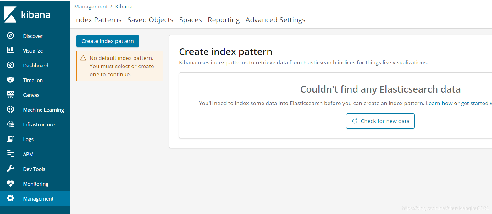 浏览器访问本机5601端口看到以下界面说明kibana运行成功: