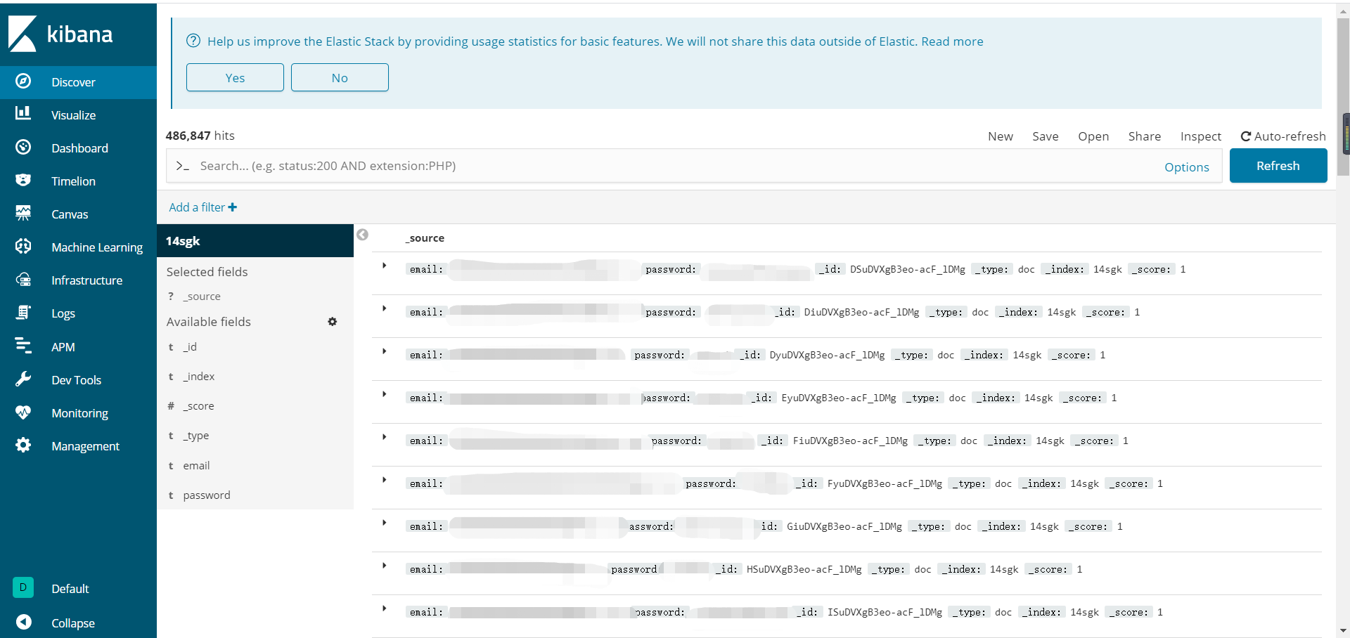 input { file { path => "D:/sgk/BreachCompilation/old/*.txt" start_position => "beginning" } } filter { csv { columns => ["email","password"] separator => ":" } mutate { remove_field => [ "message","path","host","@timestamp","@version"] } } output { stdout { codec => rubydebug } elasticsearch { hosts => ["127.0.0.1:9200"] index => "14sgk" } }