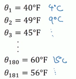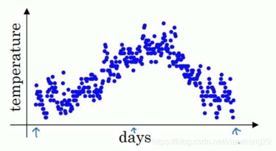 举个例子,下图是伦敦一年四季温度变化的图片,横轴为时间(天为单位),纵轴为一天的平均温度: