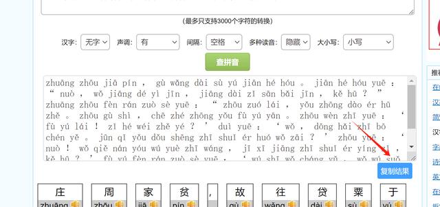 步骤4:点击复制结果,可以把拼音复制到文档中供我们使用