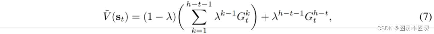 其中V˜(s)是状态s的估计值,通过td-λ公式从采样的短期轨迹计算出来(Sutton等人,1998),该公式通过对不同k步的指数平均回归计算估计值,以平衡估计的方差和偏差:
