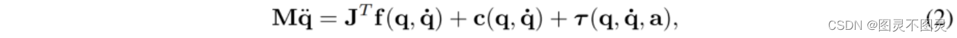 对于简单的环境,我们使用基于扭矩的控制来驱动我们的代理,其中策略在每个时间步长输出τ。对于更复杂的肌肉驱动情况,每块肌肉都由一系列可能通过多个刚体的附着位点组成,并且策略输出每块肌肉的激活值。肌肉激活信号产生纯粹的收缩力(模拟生物肌肉)(Leeetal.,2019)。