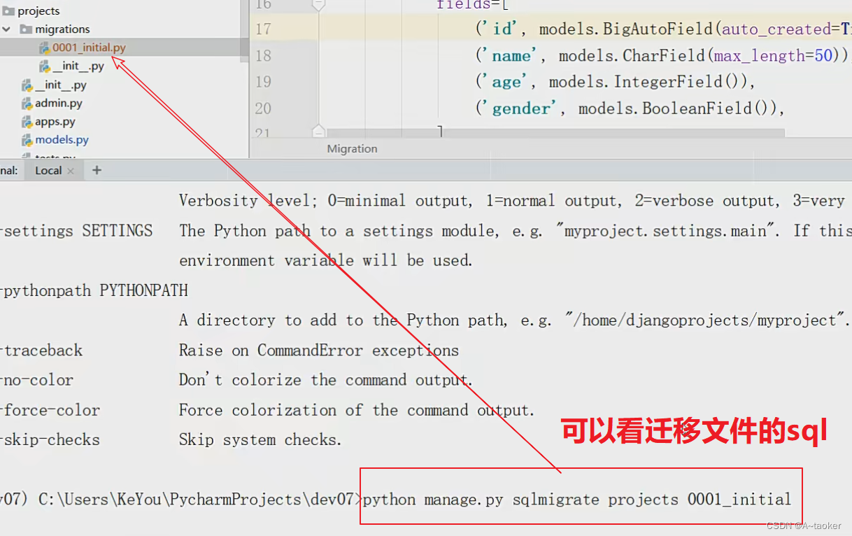 用sqlmigrate 应用名 迁移文件名 可以查看