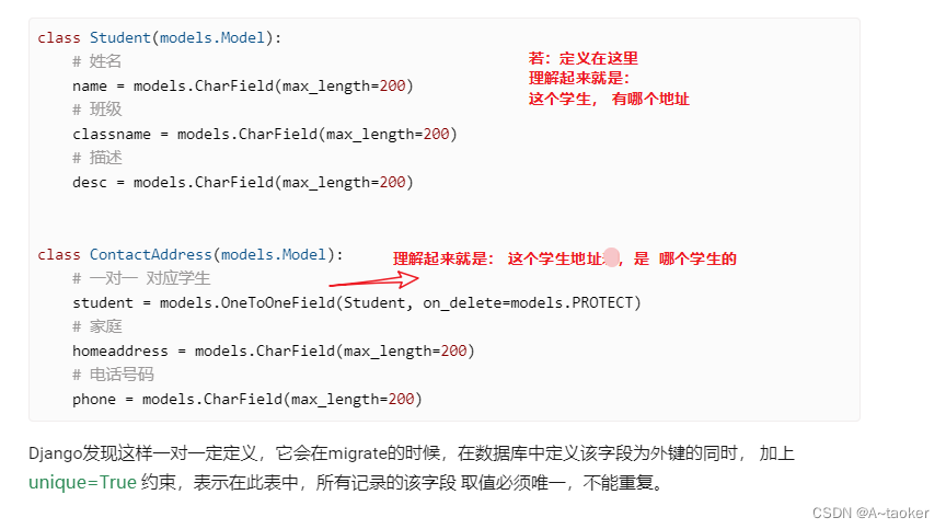 外键会自动加上unique=True 的约束 (因为是一对一的关系)