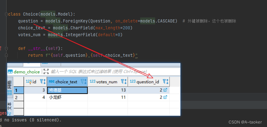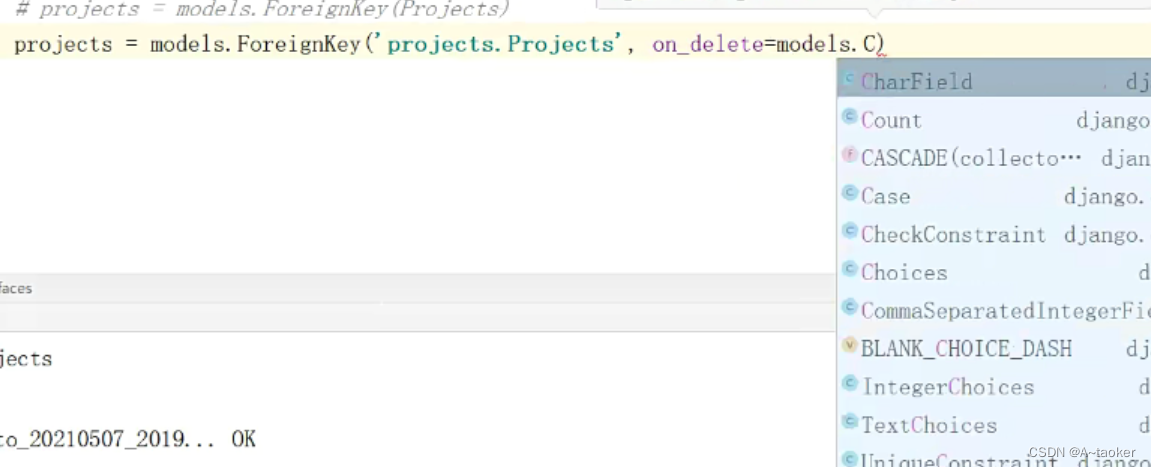 第二个参数是on_delete , 表示 附表的数据删除之后,子表数据要怎么样(级联删除策略)