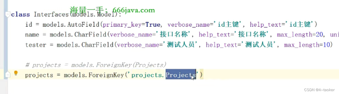 #(一对多) 如项目表和 接口表 关系为 一对多 一个项目有多个接口 一个接口只属于一个项目