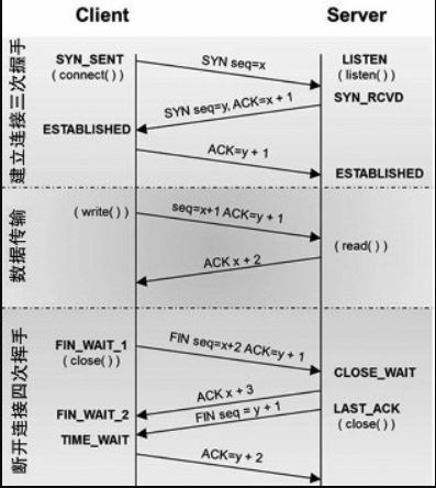 - 客户端发送SYN(SEQ=x)报文给服务器端,进入SYN_SEND状态。