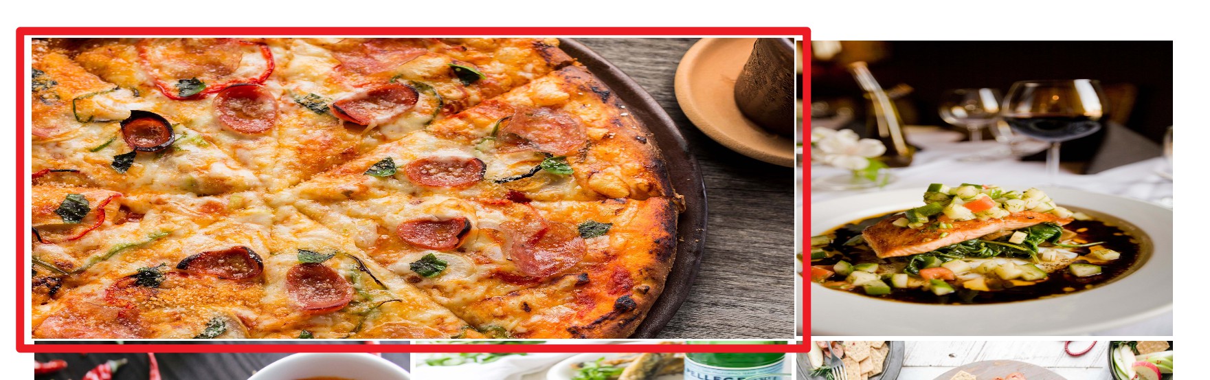 美食篇内存在一个鼠标移动到图片上,图片会放大的情况,但是放大不会超出盒子。这个效果需要使用transition和transform来制作一个动画的放大效果,可以去查找相关的知识来参考这个网站:transition的教程和transform的教程,在使用这个效果的时候,首先给图片设置transition的效果告诉图片到时候发生行动的时候需要用多长时间进行,之后给img:hover的效果里放入transform放大多少。这里我给出如何做出这个效果的代码来解释一下注意的地方。