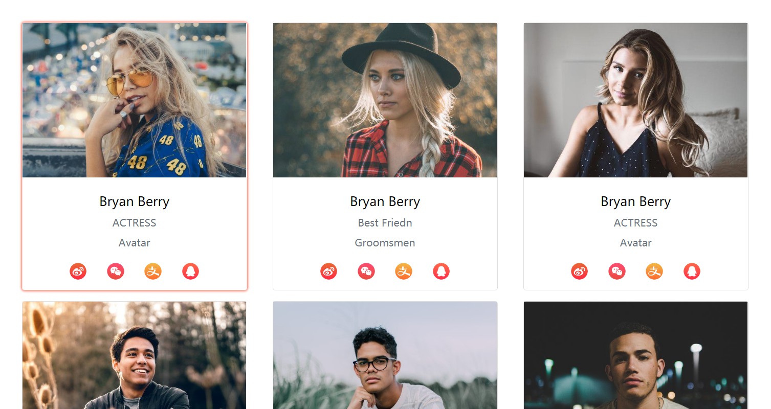 中间的部分是一个图片被添加上了背景色,这个效果需要利用position的定位效果来制作,先用position:relative固定住主要的盒子,然后把图片浮动在盒子里面,在用另外一个相同大的盒子用rgba(0,0,0,0.5)的背景颜色,用position:absolute定位到主要的盒子的位置,就可以完成这个效果。