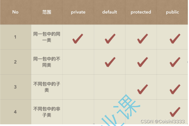表示这些属性/方法/类 只在当前包(文件夹-同级目录)中可见,子目录(子文件夹)都不可见