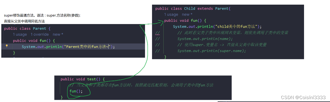 4、super修饰普通方法 。语法:super.方法名称(参数)