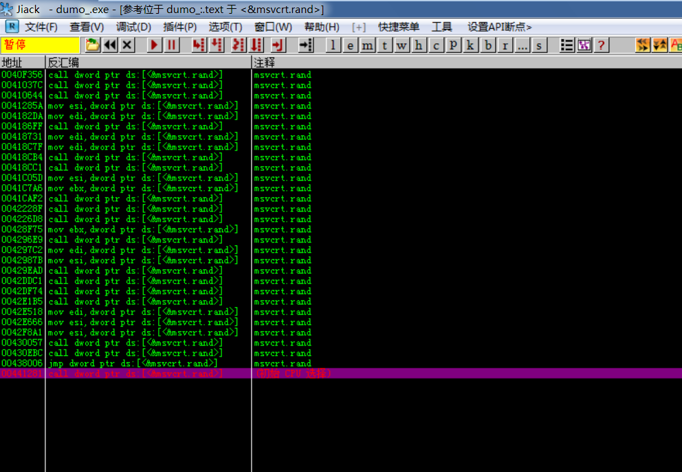 我们发现调用rand地方很多处,我们只能够一次次筛选找到最像的地方