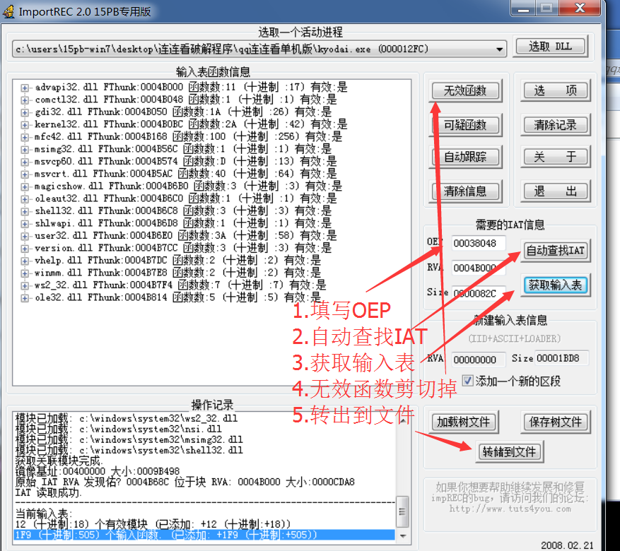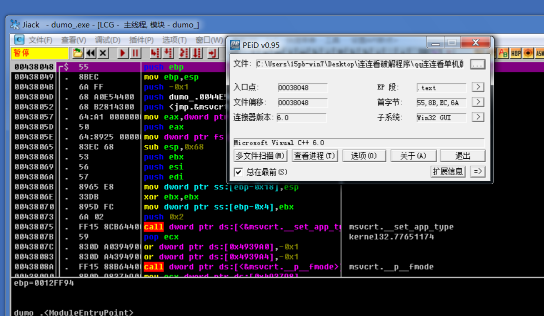 因为在OEP处dump出来比较干净,没有给污染,记住OEP地址-基地址=38048