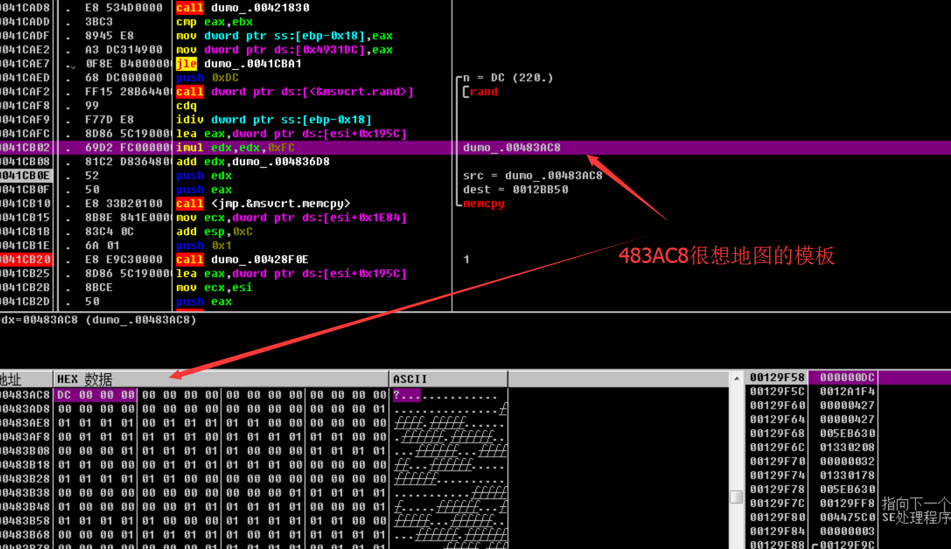 ③:把堆空间随机生成的数据给12BB50地图模板(非零的数据全部填充掉)